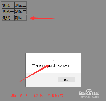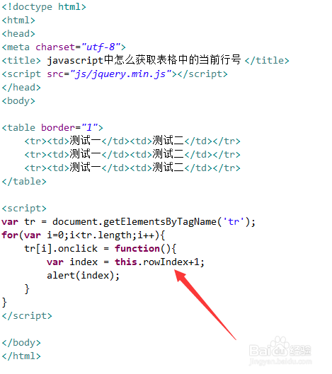 在function函数内,经由过程rowIndex属性获适当前的行号,并利用alert()方式将行号输出。