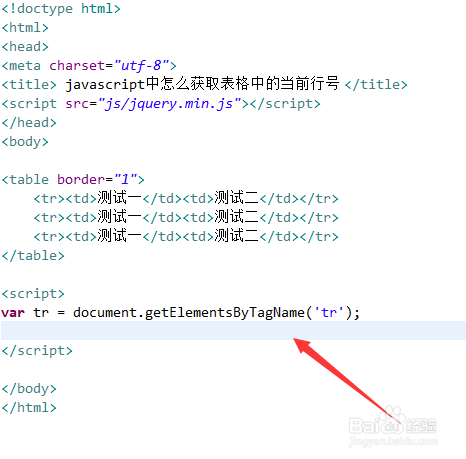 2、在js中,经由过程getElementsByTagName()方式获得tr行对象。