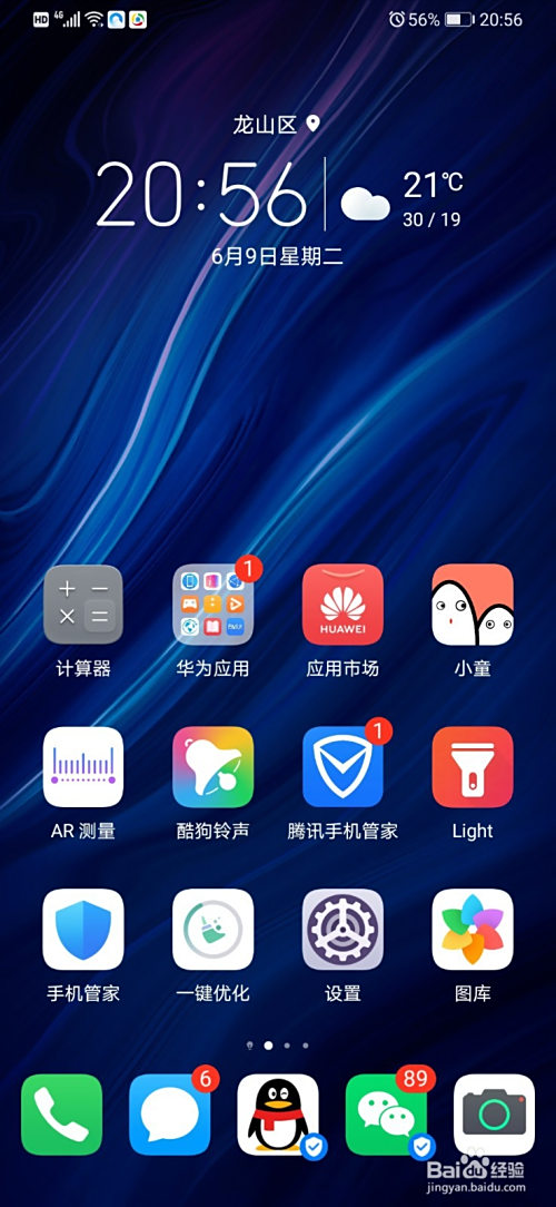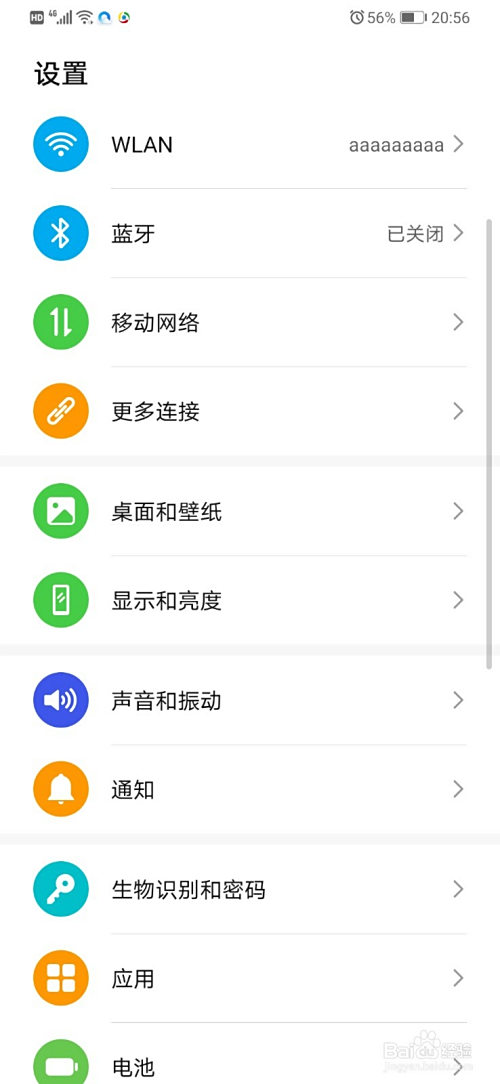 我们点击手机桌面,进入设置傍边。