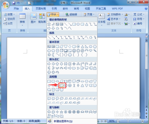 3、按下鼠标左键不放,拖动鼠标,画出一个资料带流程图;