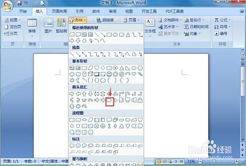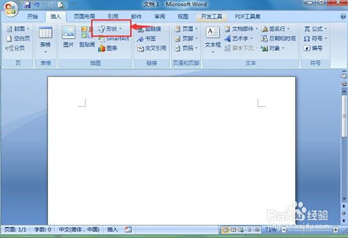 1、打开word,点击插入,选择外形东西;