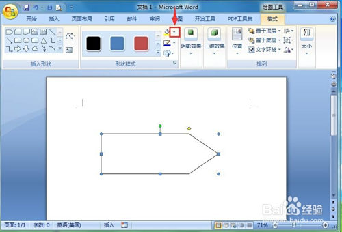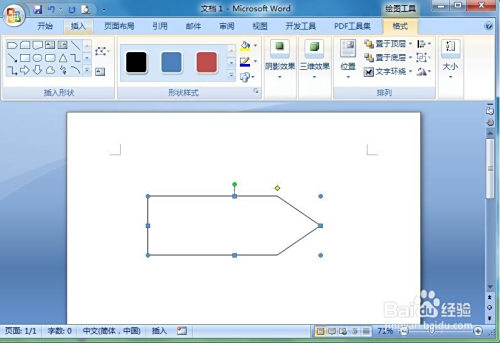 在编纂区中按下鼠标左键不放,拖动鼠标,画出一个五边形箭头;