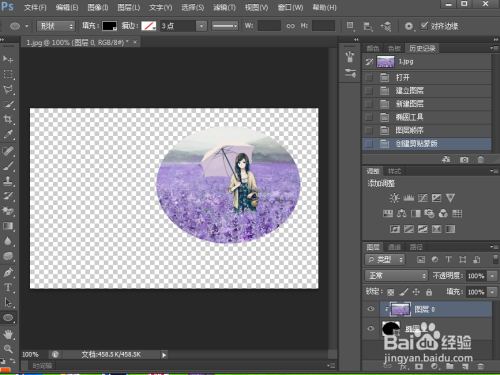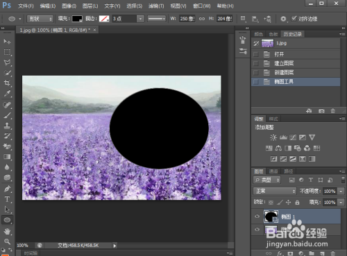 2、点击卵形状,画一个椭圆,包含要拔取的图片部门;
