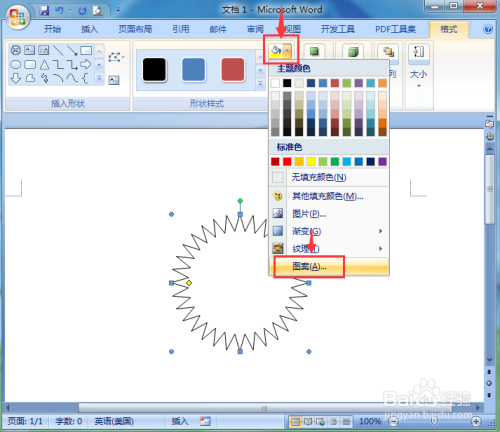 我们就在word中给三十二角星填充上了大纸屑图案。