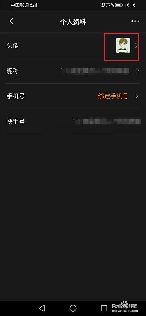 第三步进去小我资料界面之后,点击头像,如下图所示: