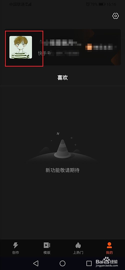 第二步进去快影我的界面之后,点击头像,如下图所示: