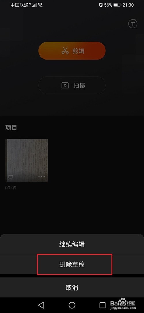 第五步可以看到已经删除了快影草稿内容了,如下图所示: