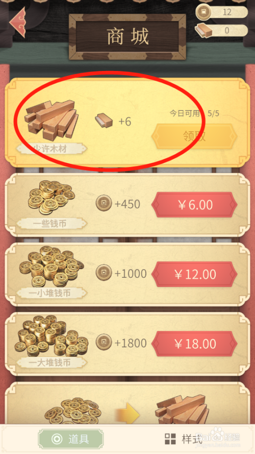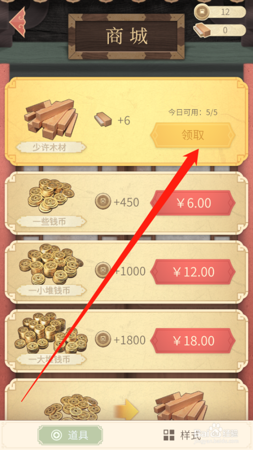就可以看到可以领取的每日木材道具了