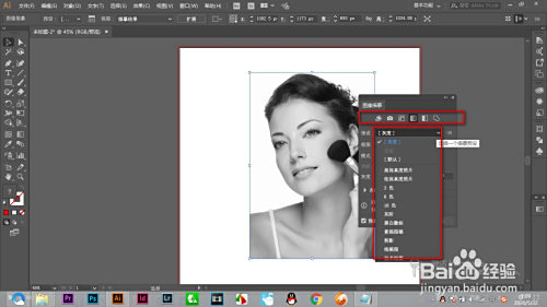 2.之后在上方的菜单中可以看到有一个描摹的选项按钮。
