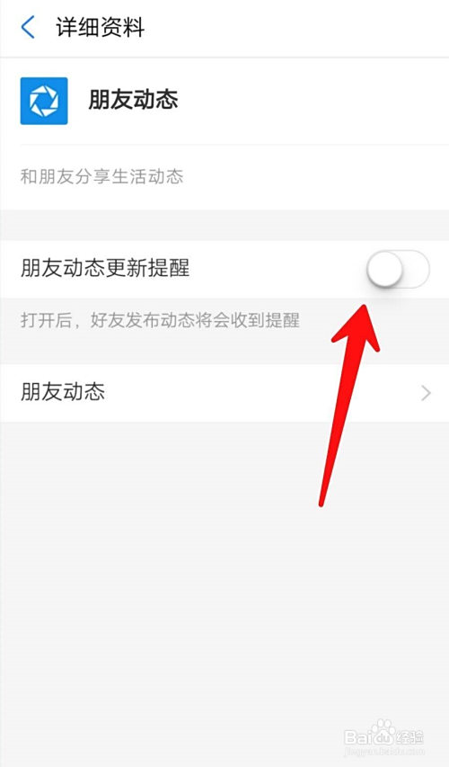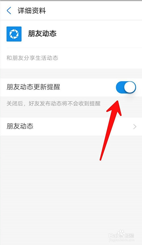 开启当作功,伴侣再有动态更新,您就会收到提醒信息了。