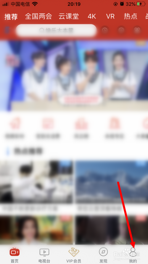 起首在手机上打开并登岸天翼超高清App,并在首页面点击右下角的【我的】。