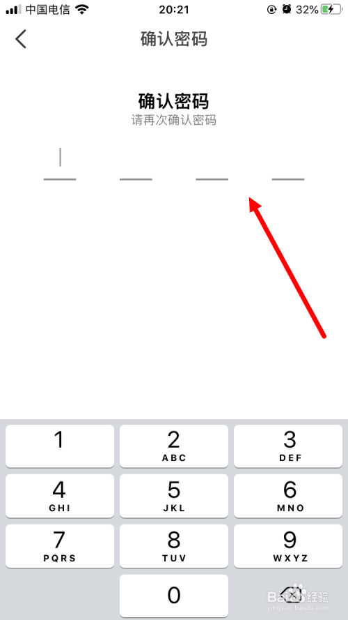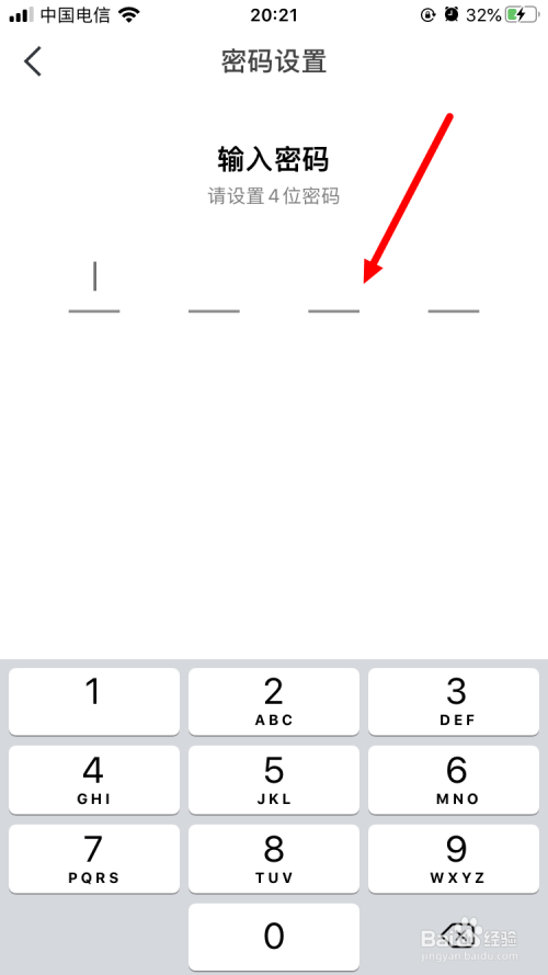 5、接下来需要设置一个4位数字暗码,输入暗码;