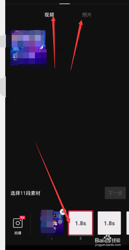 第五:点击添加【视频】或者是【照片】素材然后点击【下一步】按钮。