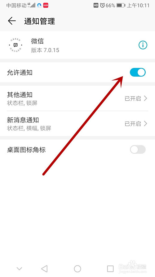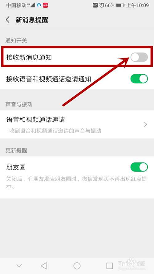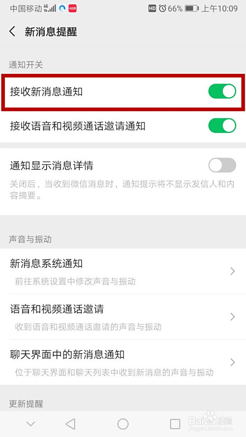 看到‘领受新动静通知’这个选项,把它右侧的开关点亮,酿成绿色即可。
