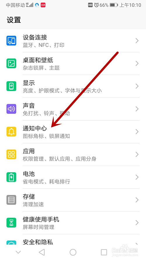 然后下拉找到‘通知中间’。