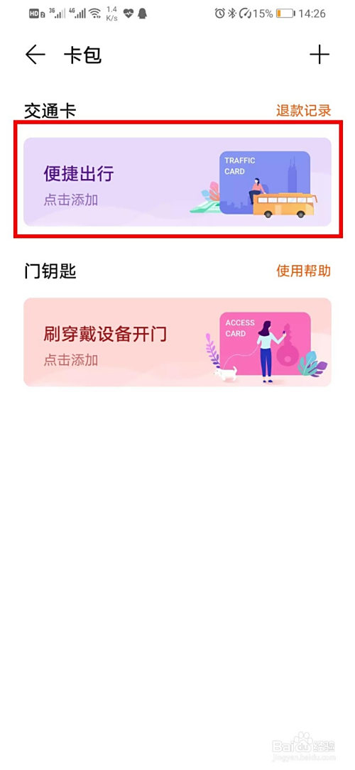 打开后,点击交通卡,继续添加就可以了。