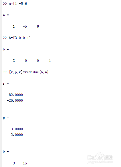 多项式部门分式睁开。利用residue函数,挪用格局为: