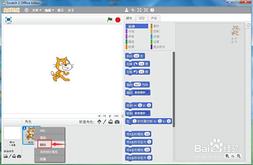 用这样的方式,我们就可以在scratch2.0中将脚色增大。