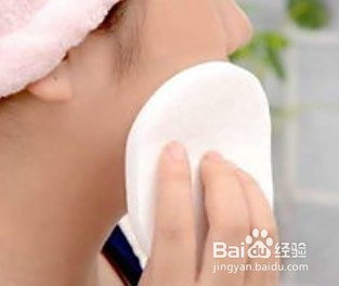 用化妆棉浸湿洛菲洛嘉洁肤卸妆精髓液并擦净。