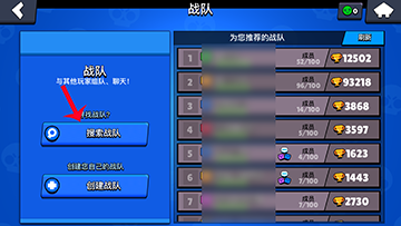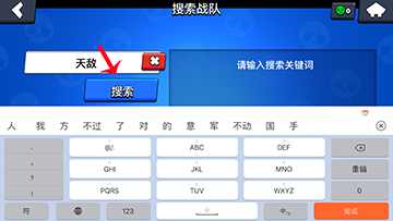 输入想要加的战队关头词,点击搜刮。