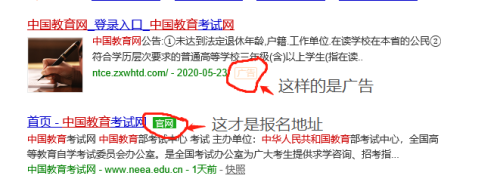 在IE浏览器(Internet Explorer)搜刮中国教育测验网(这里要注重要利用IE浏览器其他的不可,其二要看到右边有官网二字,或者下面没有告白,大大都呈现的网址是告白。)