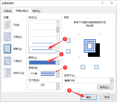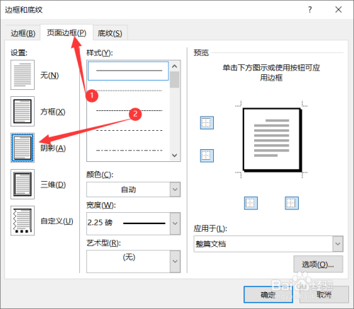 在弹出的窗口中点击“页面边框”,边框类型良多,这里选择的是“暗影”