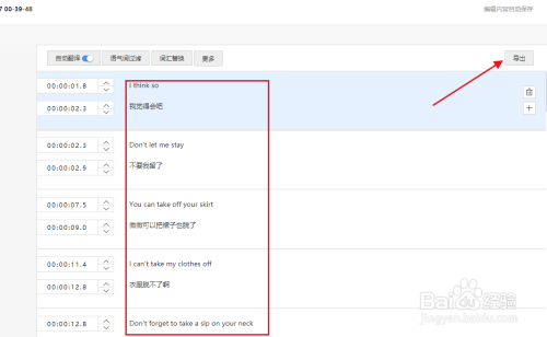 6.点窜错误的字幕,确认无误后点击导出即可。