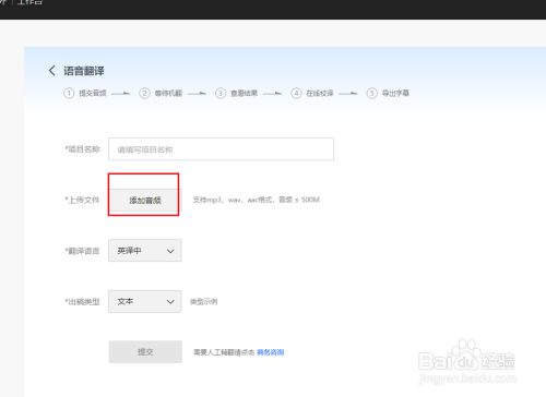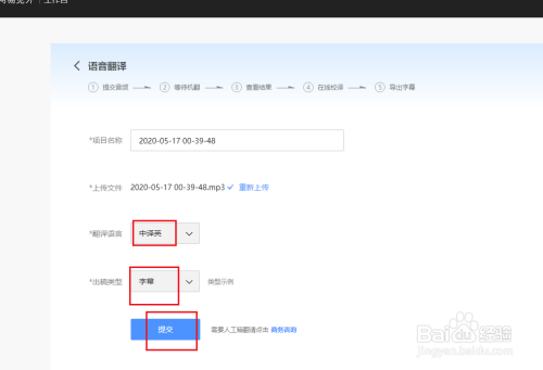 选择翻译说话为中译英,出稿类型为字幕,点击提交。