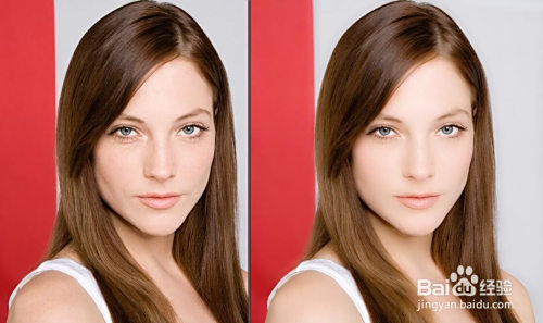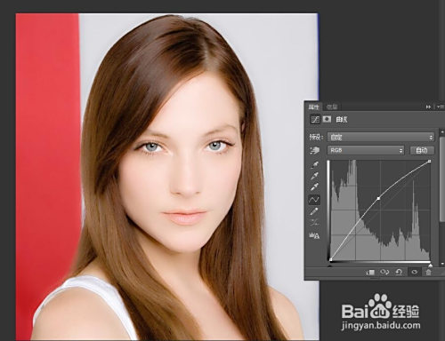跟着把曲线的亮度调高,就会形当作磨皮的结果,连着斑点也被磨失落了。