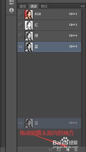 接着将‘蓝色通道’拖动到底下‘立异新通道’处复制一层。