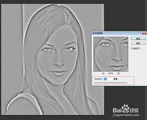 在跳出的窗口中,调节半径,直到脸上的斑点看的比力较着。