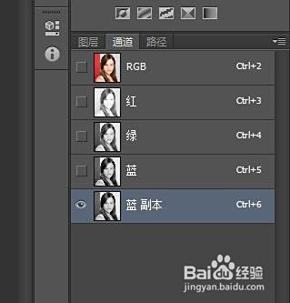 然后点击通道这里,选择一个斑点比力较着的通道,在这里小编选择了‘蓝色通道’。