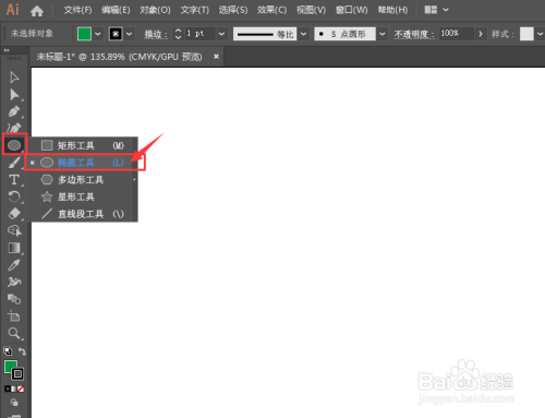 打开【Illustrator2019软件】,点击【椭圆东西】或是按【L键】。