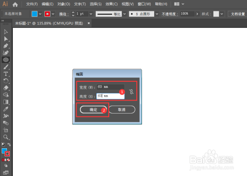 点击空白处,设置【椭圆长与宽】60mm一样的尺寸,点击【确定】。
