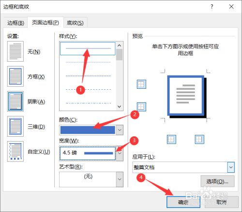 在弹出的窗口中点击“页面边框”,边框类型良多,这里选择的是“暗影”