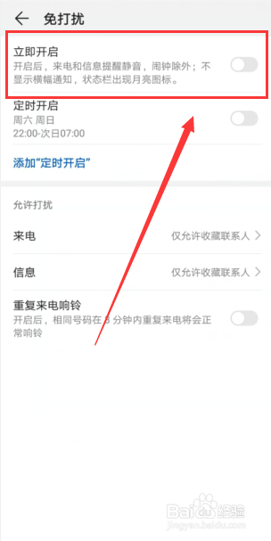 跳转界面,点击下方的免打搅模式。
