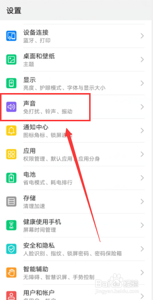 进入设置界面,选择声音选项。