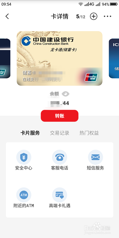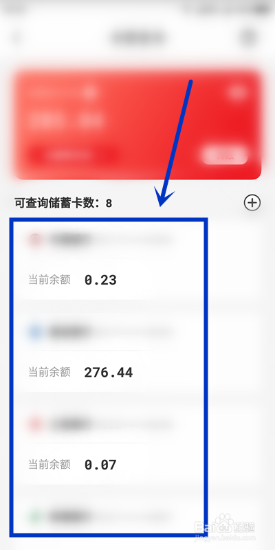 下面是每一张银行卡的余额。要查询某一银行卡的卡详情,单击该银行卡