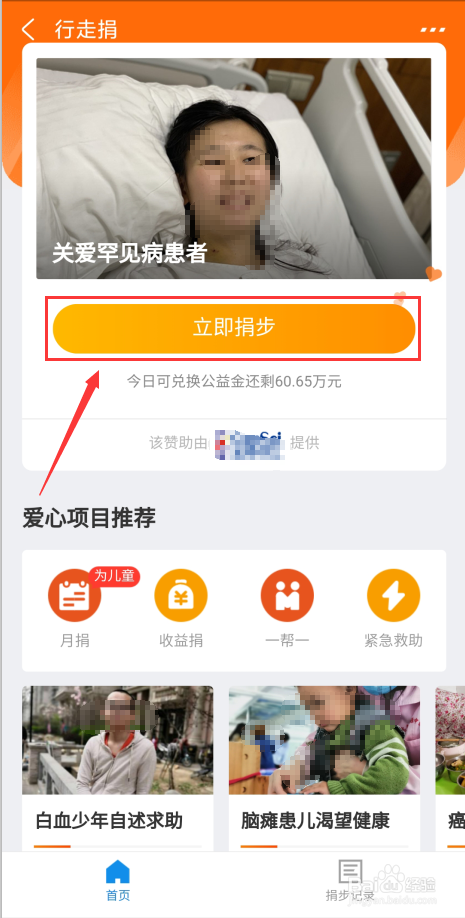 进入“行走捐”页面后,点击“当即捐步”。见下图