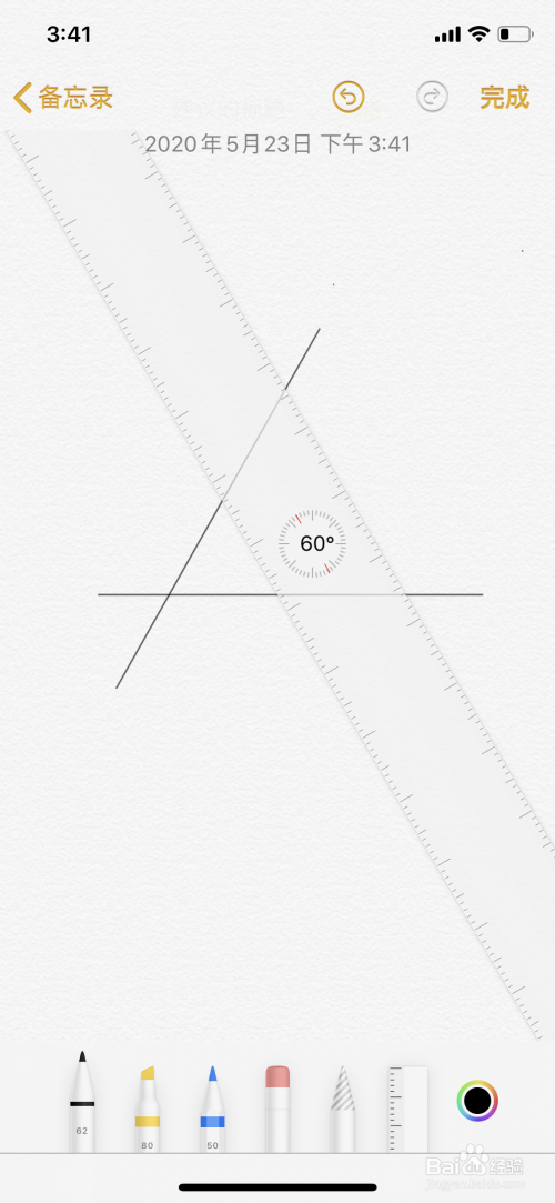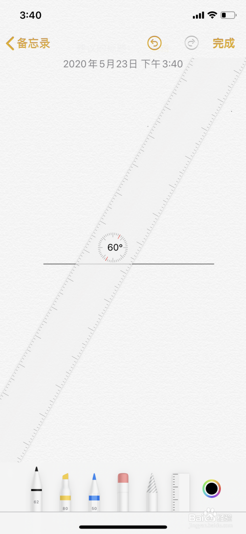 7、两指拉动直尺至右边程度60度。
