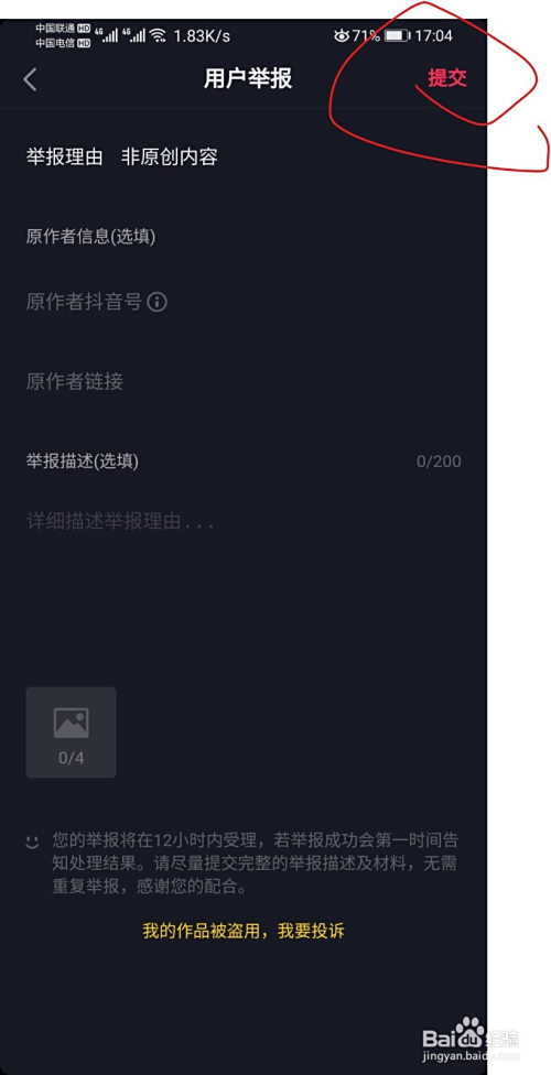 选择后,输入具体原因,并上传图片。