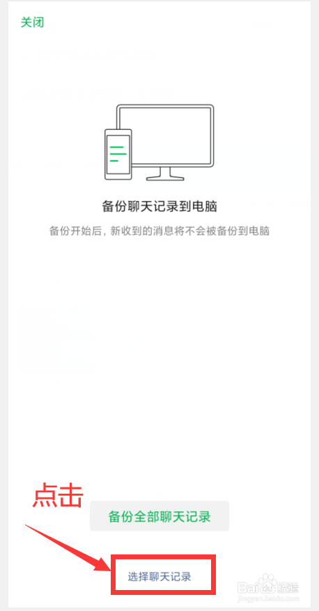 接着回到手机上点击“选择聊天记实”点击备份即可将要备份的聊天记实备份到电脑上