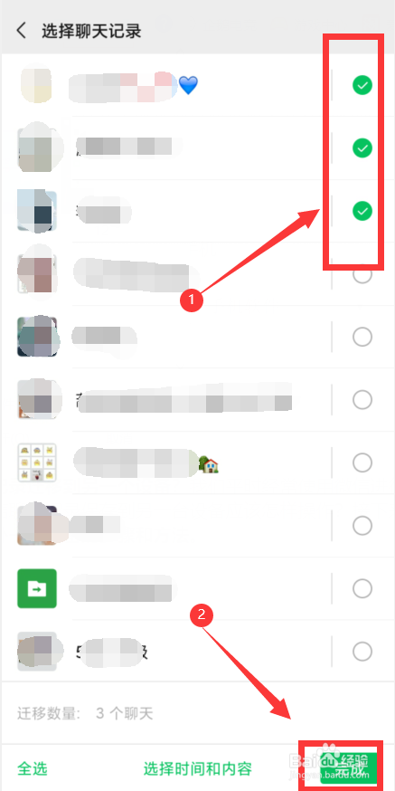 8. 在要迁徙的聊天记实后边打钩,点击右下角的完当作即可