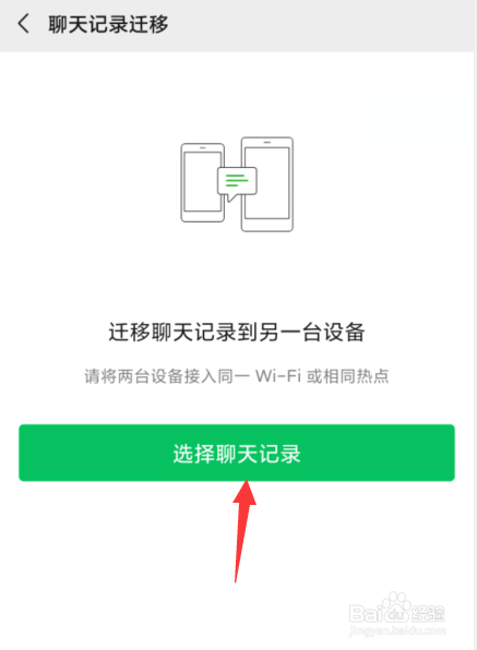 7. 将两台设备毗连在统一WiFi下,点击“选择聊天记实”