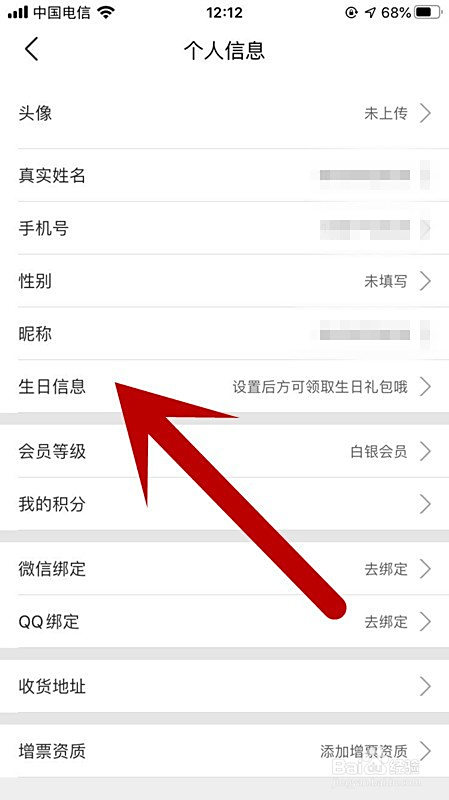 5、进入后,选择并点击生日信息进行编纂即可完当作。
