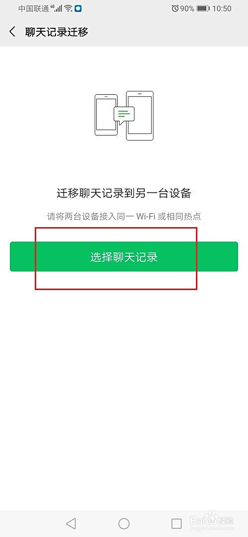 第五步在聊天记实迁徙界面之后,点击选择聊天记实,如下图所示: