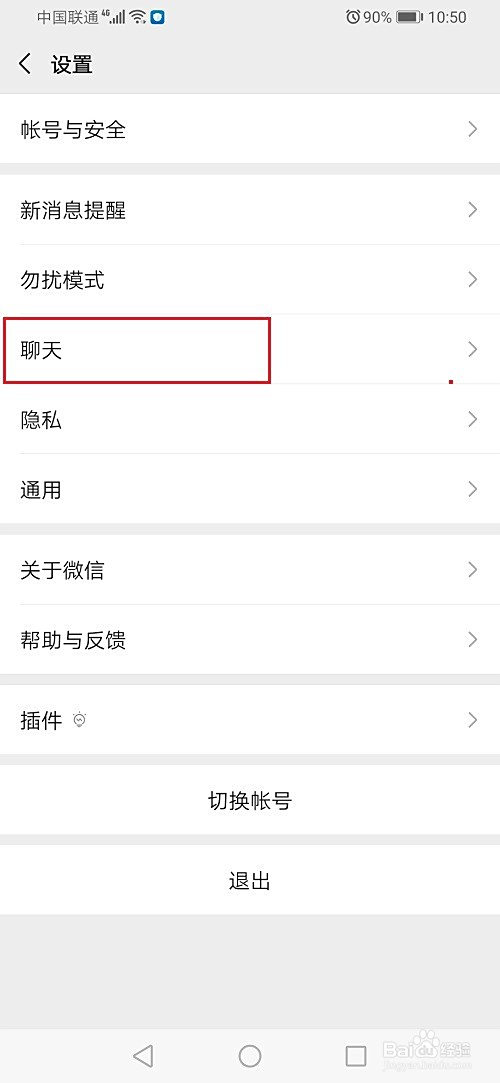 第二步进去微信设置之后,点击聊天,如下图所示: