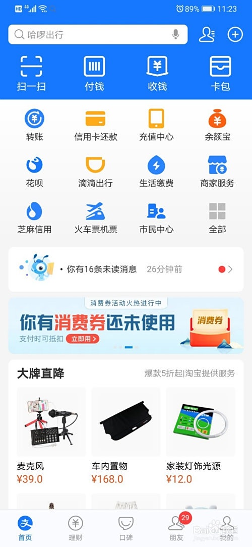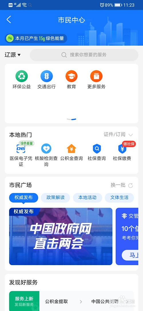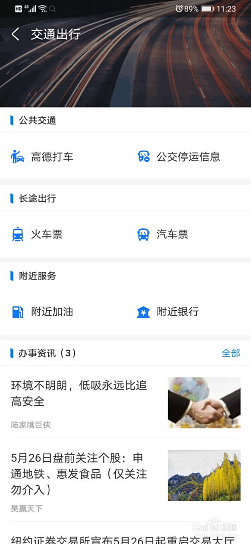 在这里,我们可能看不到,因为这里有第二页,翻篇然后点击交通出行。