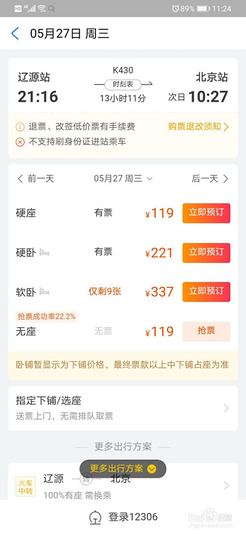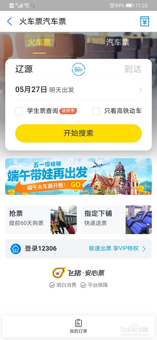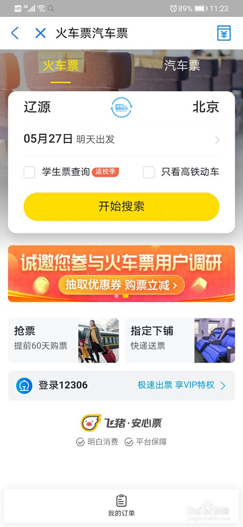 我们选择火车票之后,进入到相关信息查询界面,我们输入地址。
