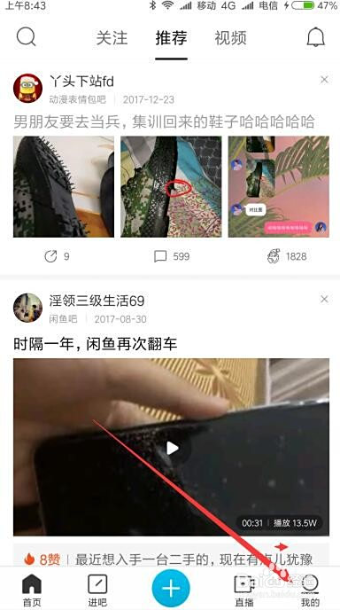 在打开的百度贴吧软件本家儿界面,点击右下角的我的选项卡。
